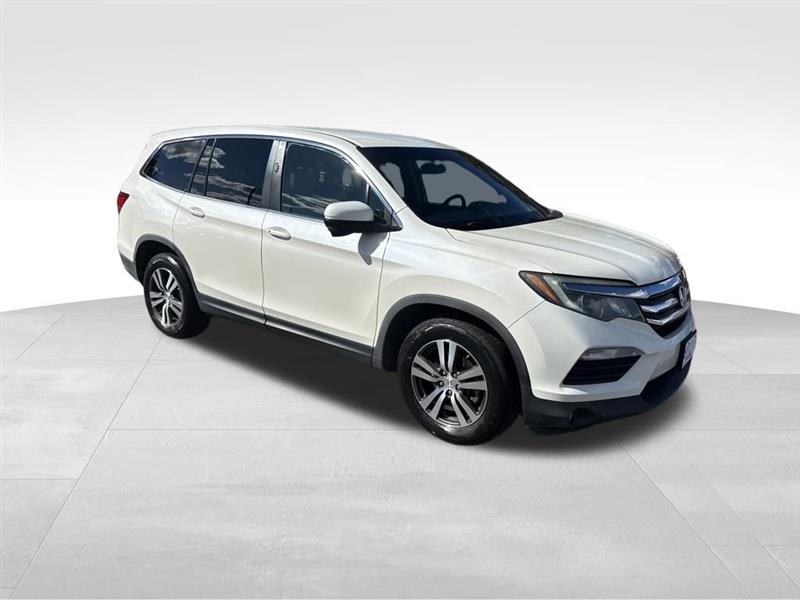 White Diamond Pearl 2018 Honda Pilot EX FWD 6-Speed Automatic 3.5L V6 24V SOHC i-VTEC 40 Point Used Car Inspection, Full Detail, Pilot EX, 4D Sport Utility, 3.5L V6 24V SOHC i-VTEC, 6-Speed Automatic, FWD, Beige Cloth, 3rd row seats: split-bench, Alloy wheels, Apple CarPlay/Android Auto, Front dual zone A/C, Front fog lights, Fully automatic headlights, Garage door transmitter: HomeLink, Remote keyless entry, Speed control.